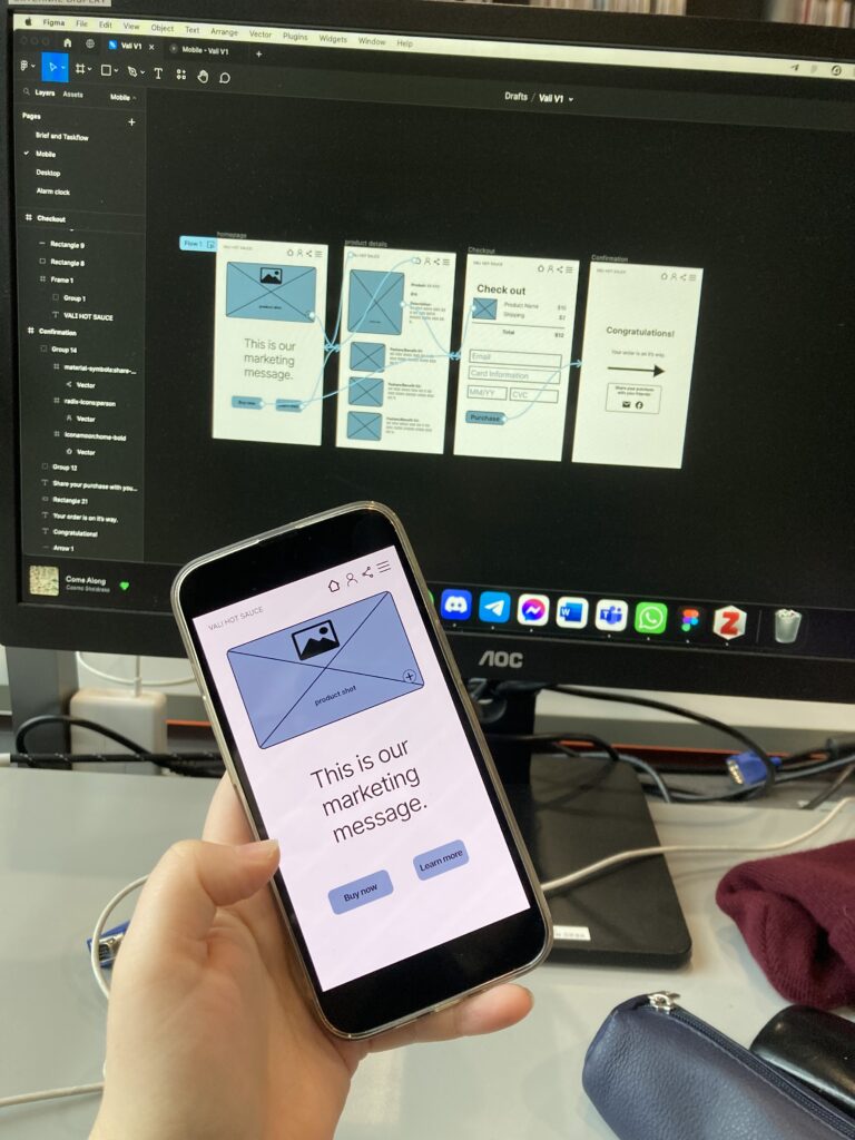 We learned how to conect frames and experience the flow of the website we created for the first time. One of the really useful tools for prototyping is FIGMA MIRROR.