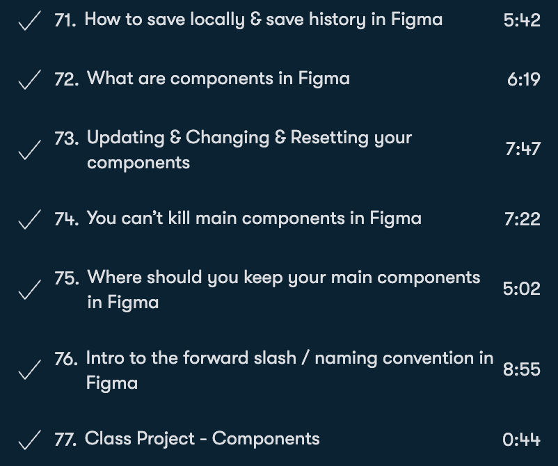 I felt a significant change in this week’s lessons. We moved from “how to create stuff” to “how to create a system for our design.” We learned about components and their variants. I would explain it like a “sticker”: We created a design and added it to components that helped us replicate the “sticker” on different frames. The best thing is that if I edit the original component, it is automatically edited in their copies as well.