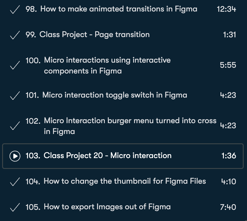 The last week of Moocs is here. The course took me longer than expected, but I gained so many skills and knowledge that I am not slightly annoyed. I am so glad I chose this course for most of my semester. I learned so much about Figma and UX design, and I feel that it is useful for my future studies and work. Daniel Scott is an amazing teacher, and I plan to take his other courses. My current figma skills can be useful for my current design courses and for creating better visualisation of my ideas.